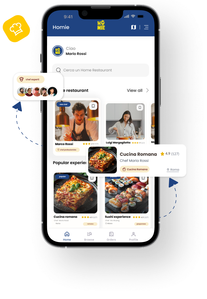 Scopri i veri sapori della cucina con Homie. Entra in contatto e deliziati con autentici Home restaurant e chef privati, tutto in pochi e semplici click.